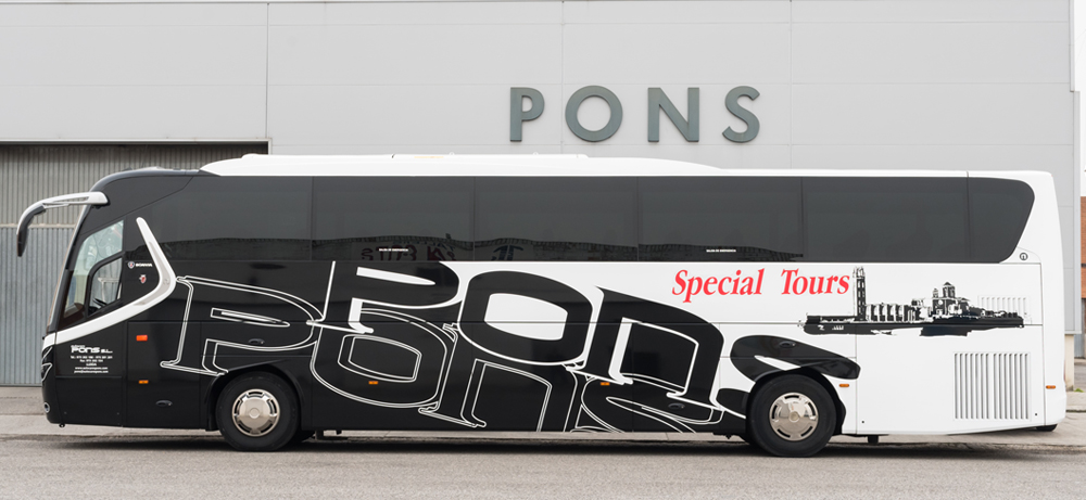 Autocars Pons disposa d’una flota de més de 25 vehicles, que s’adapten a totes les necessitats. La flota va des d’autocars de 64 places, autocars de 55 places, mini-bus de 35 places, de 25 places, fins a taxi de 8 places, vehicle adaptat amb plataforma per persones amb mobilitat reduïda.